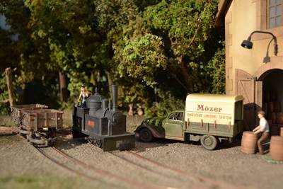 Les wagonnets sont des prototypes faits à partir des bennes KBScale. Les choux transportés sont des moulages résine en série de pièces Scenic Express.