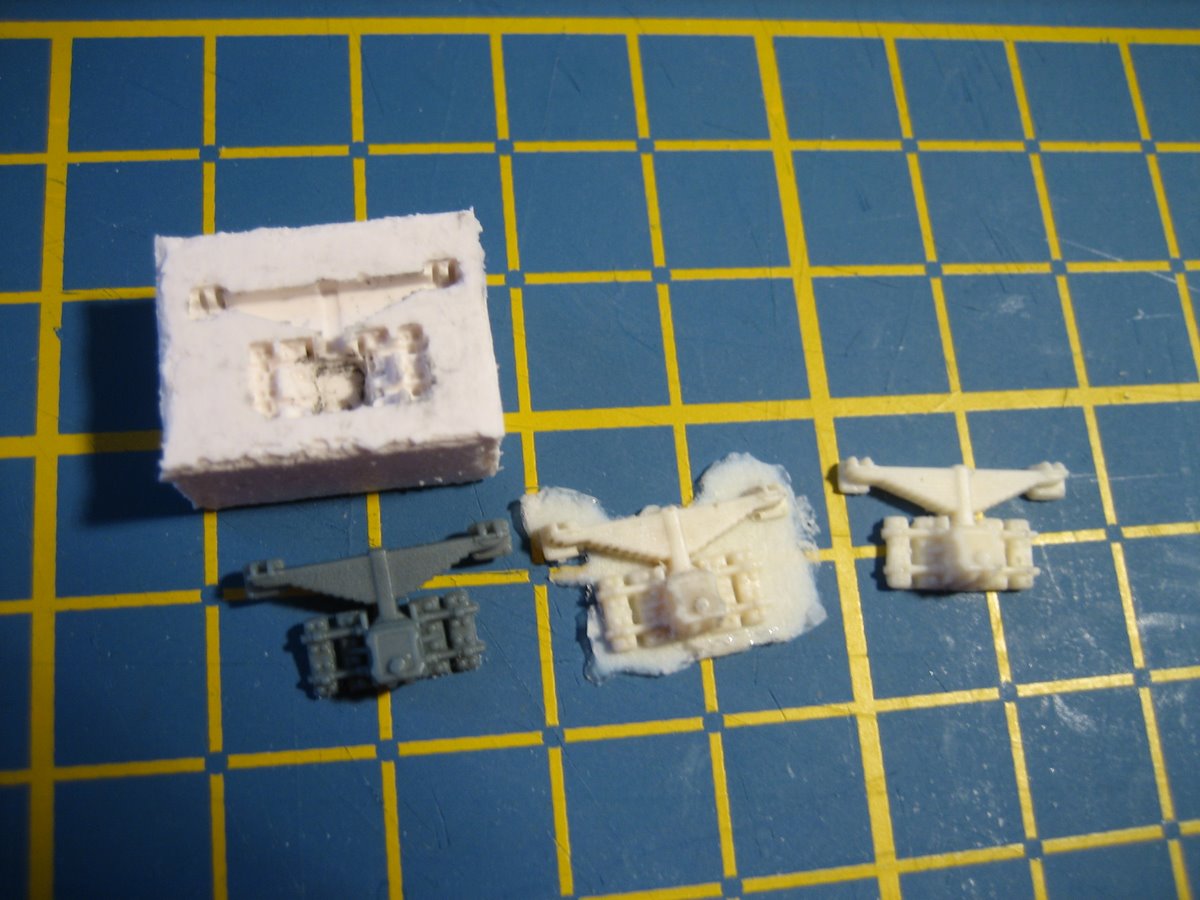 Mais ça ne me satisfaisait pas vraiment. Puis LS Models a sorti le locotracteur Y7100 que je me suis bien-sûr empressé d'acheter. Et j'ai alors découvert que ses boites d'essieux étaient exactement les mêmes que sur les Moyse. J'ai donc décidé d'expérimenter la duplication par moulage résine avec celles-ci. Et après différents essais (problème de bulles en particulier), je suis arrivé au résultat souhaité.